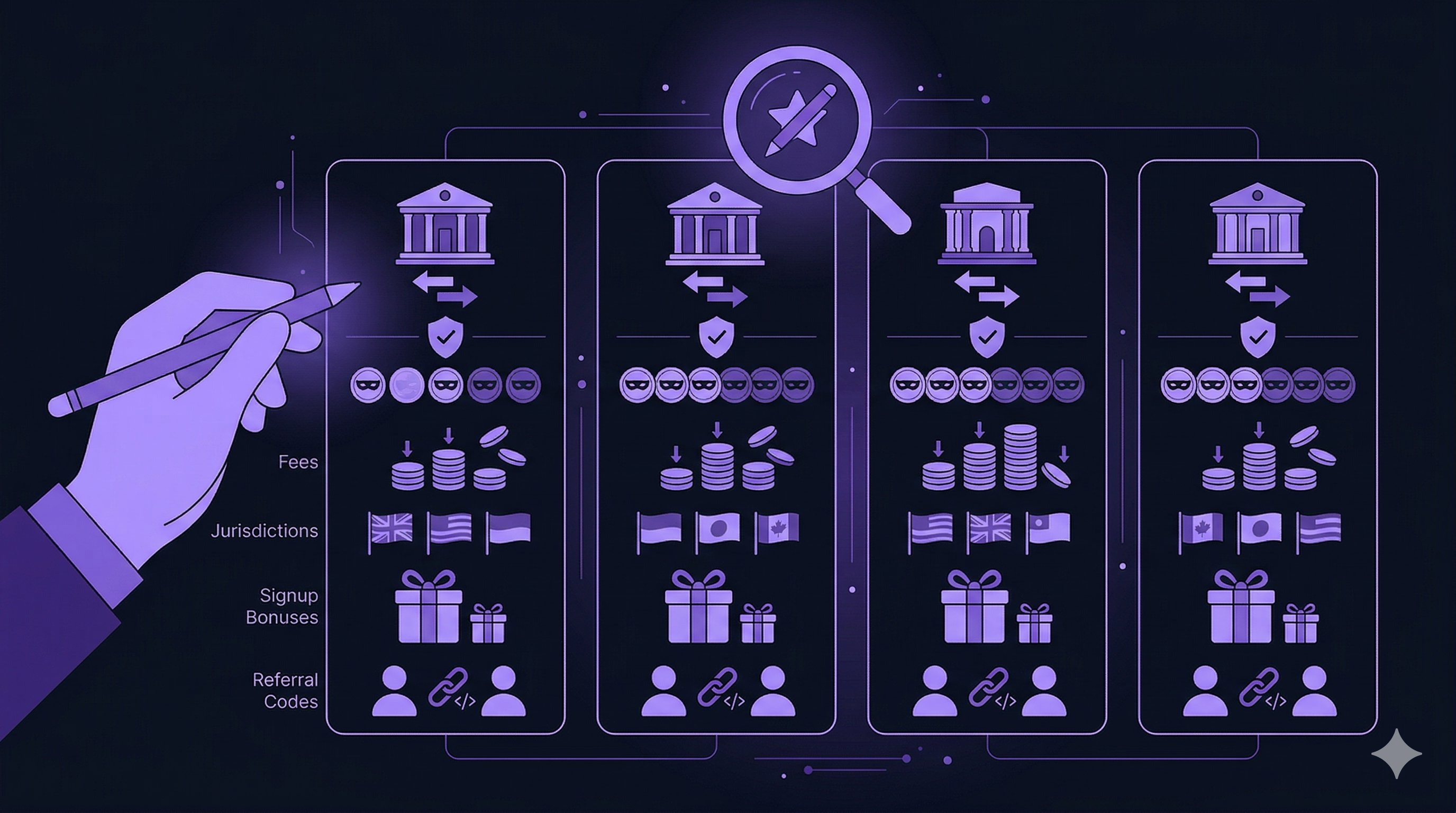 Independent profiles of every regulated exchange that supports privacy coins. Fees, jurisdictions, signup bonuses, referral codes.